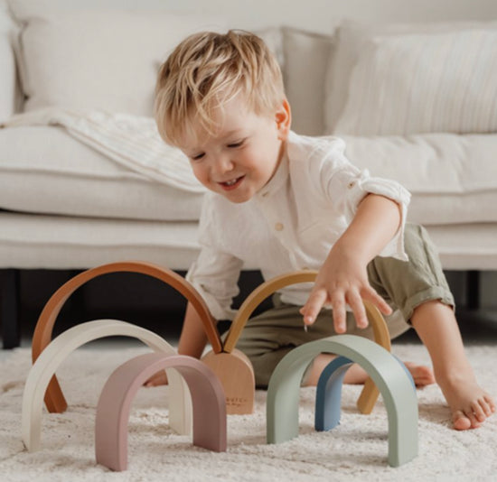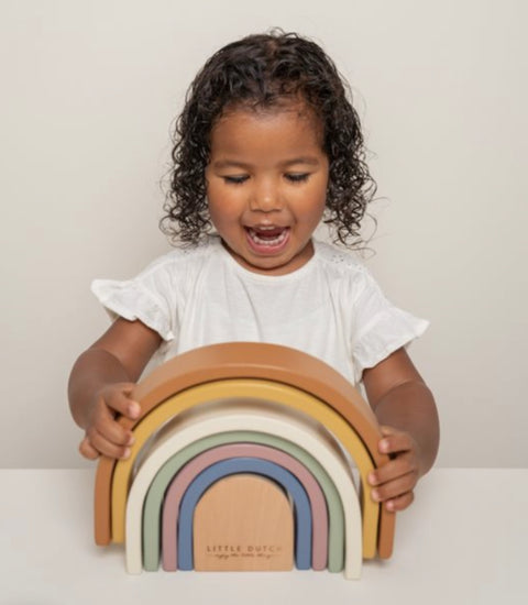 El arco iris de madera FSC Vintage de LIttle Dutch es una torre de madera con forma de un hermoso arcoiris.