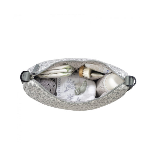 Su diseño curvado tipo góndola, es perfecto para llevar como bolsa bandolera. Con un precioso estampado floral en tonos cerise, aporta un toque moderno ideal para llevar tanto colgada al hombro como sujeta al carrito del bebé.
