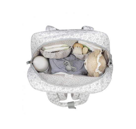 La mochila Gala con estampado floral está fabricada en 100% algodón con un tratamiento waterproof. La mochila para silla de paseo es un modelo multifunción muy ligero, resistente y de gran capacidad para llevar todo lo necesario en el paseo del bebe. Su esquema ofrece 3 bolsillos exteriores y 4 interiores para poder tener todo ordenado y a mano.
