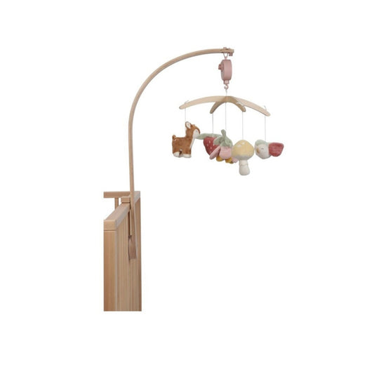 Sigue el sonido y observa cómo giran el cervatillo y el pajarito. Este simpático móvil musical de madera tiene un efecto relajante en los bebés gracias a la dulce canción de cuna. Cuenta con cinco juguetes colgantes diferentes para mirar de la colección Fairy Garden: un cervatillo, una fresa, una flor, una seta y un pájaro.