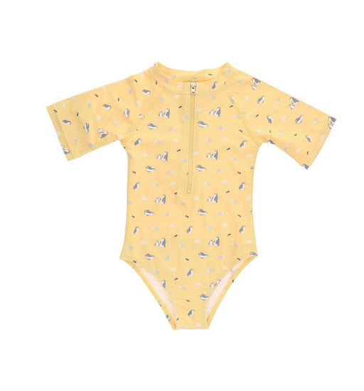 Bañador con cremallera delantera de la colección Penguins de Monnëka que ha sido creado con una tela especial que protege a la piel de los rayos solares