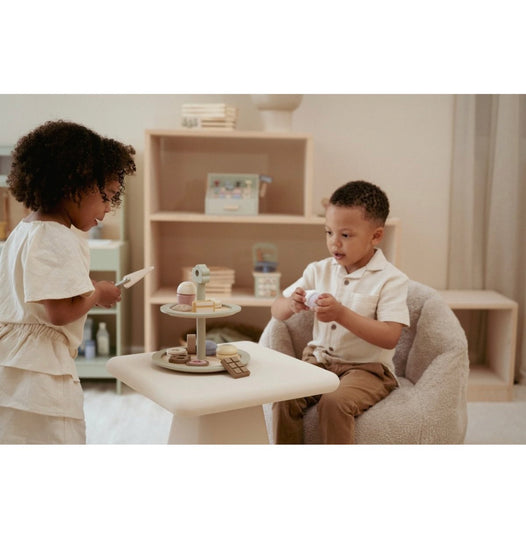 Con el encantador Soporte para Pasteles de madera FSC de Little Dutch, los peques pueden organizar su propia merienda o fiesta de té al más puro estilo tradicional. Este soporte de tres niveles incluye dulces de juguete irresistibles: muffins, galletas y macarons de colores listos para servir.