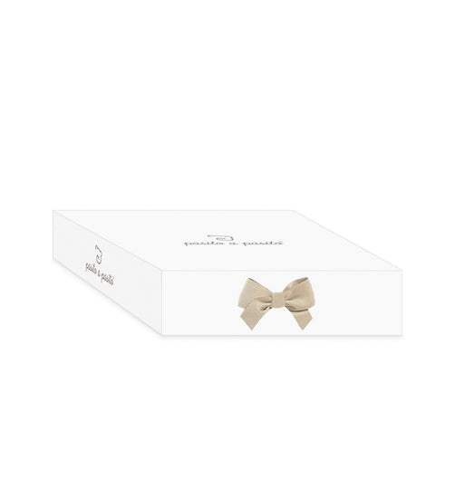 Pasito a Pasito trae el conjunto ideal para la primera puesta de tu bebé, formado por un jersey, una ranita en tricot y un body interior de bambula lisa.
