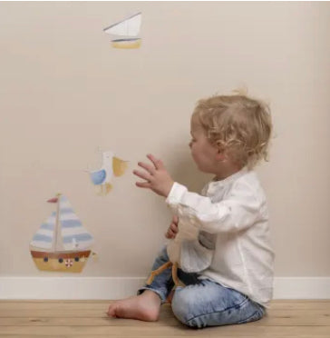 Para una decoración fácil y adorable, vinilos decorativos en colores pastel para pegar en las paredes de la habitación de tu hijo. Barquitos y gaviotas inspirados en la colección de peluches Little Dutch. Preciosos tonos pastel suaves. Tamaño: 42 x 30 cm.